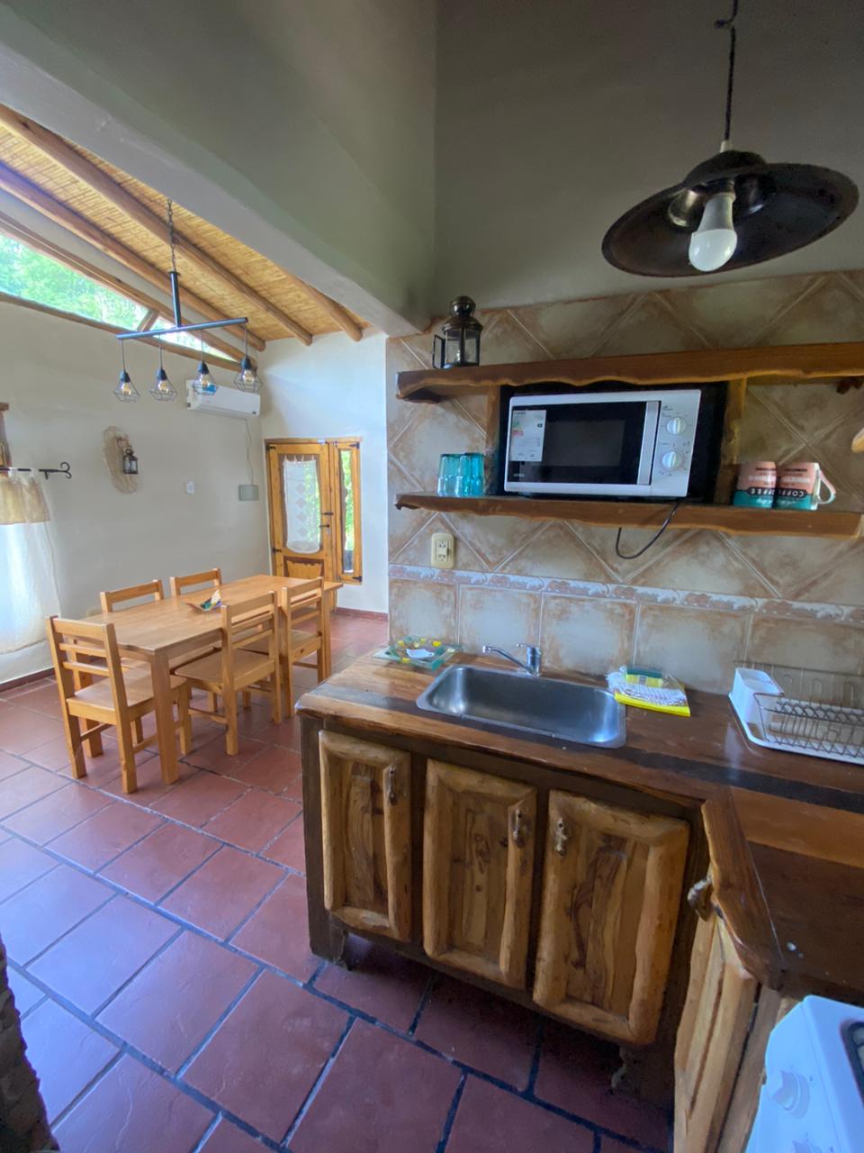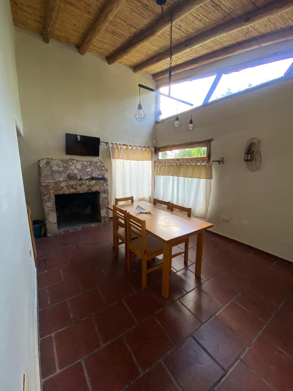 Tengo dos cabañas en un predio extenso de parque , quincho , pileta y fogón . Tiene cada una capacidad para 5 personas : dos dormitorios, baño y cocina comedor .